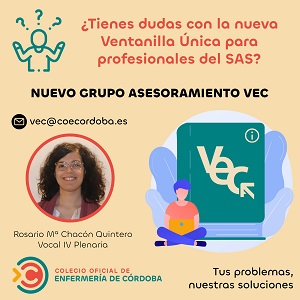 El Colegio Oficial de Enfermería de Córdoba ha constituido un nuevo grupo de asesoramiento específico sobre la nueva Ventanilla Electrónica del Candidato (VEC) del Servicio Andaluz de Salud (SAS), el tercero de una serie de nuevos grupos de trabajo centrados en diversas áreas que se están poniendo en marcha, tras el constituido el pasado mes de marzo para el impulso de la investigación enfermera y el de Desarrollo Profesional que se inició en abril. Los objetivos del Colegio con este nuevo grupo son asesorar a todos los colegiados en cuestiones relacionadas con la citada VEC, donde los profesionales sanitarios, como las enfermeras, gestionan digitalmente su currículum y su participación en los distintos procesos de selección y provisión de puestos del SAS, entre otras cuestiones.