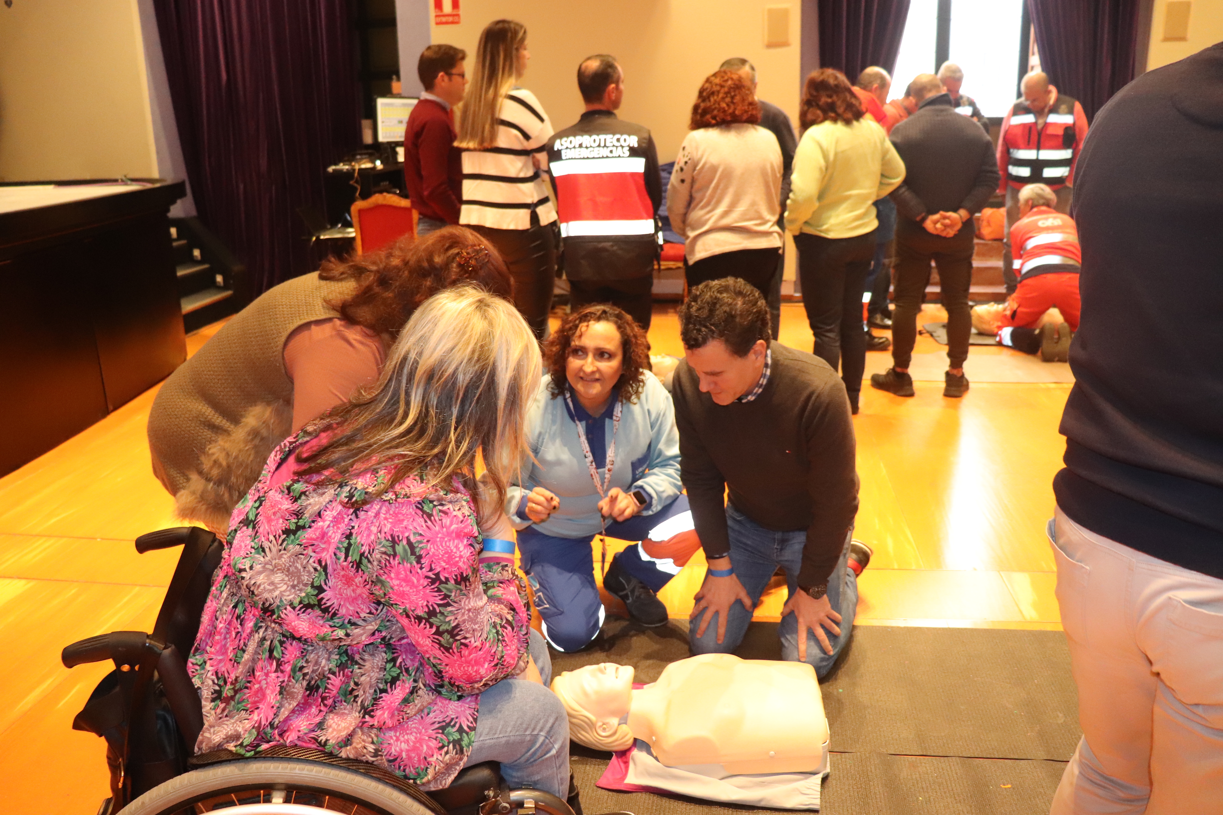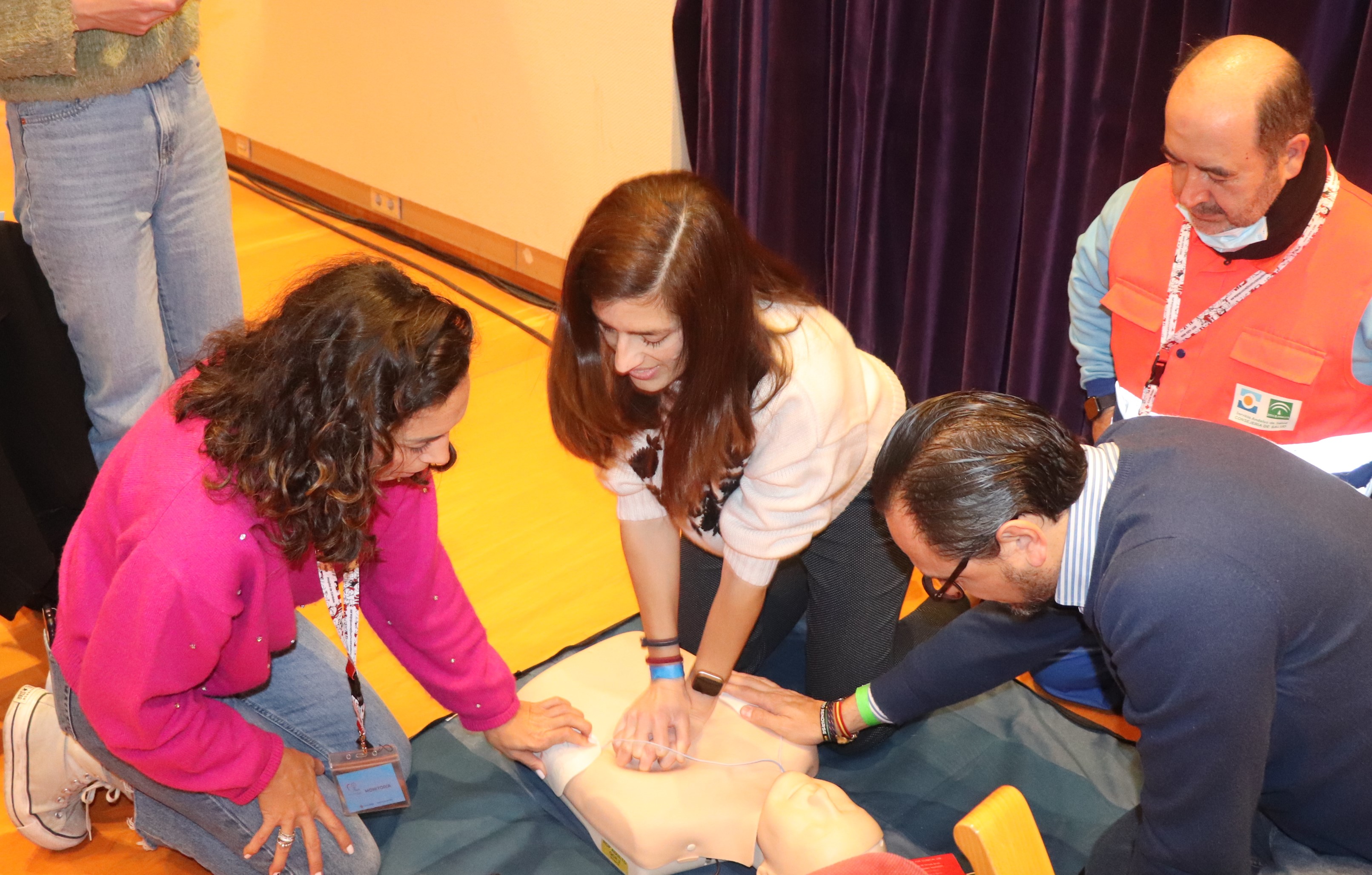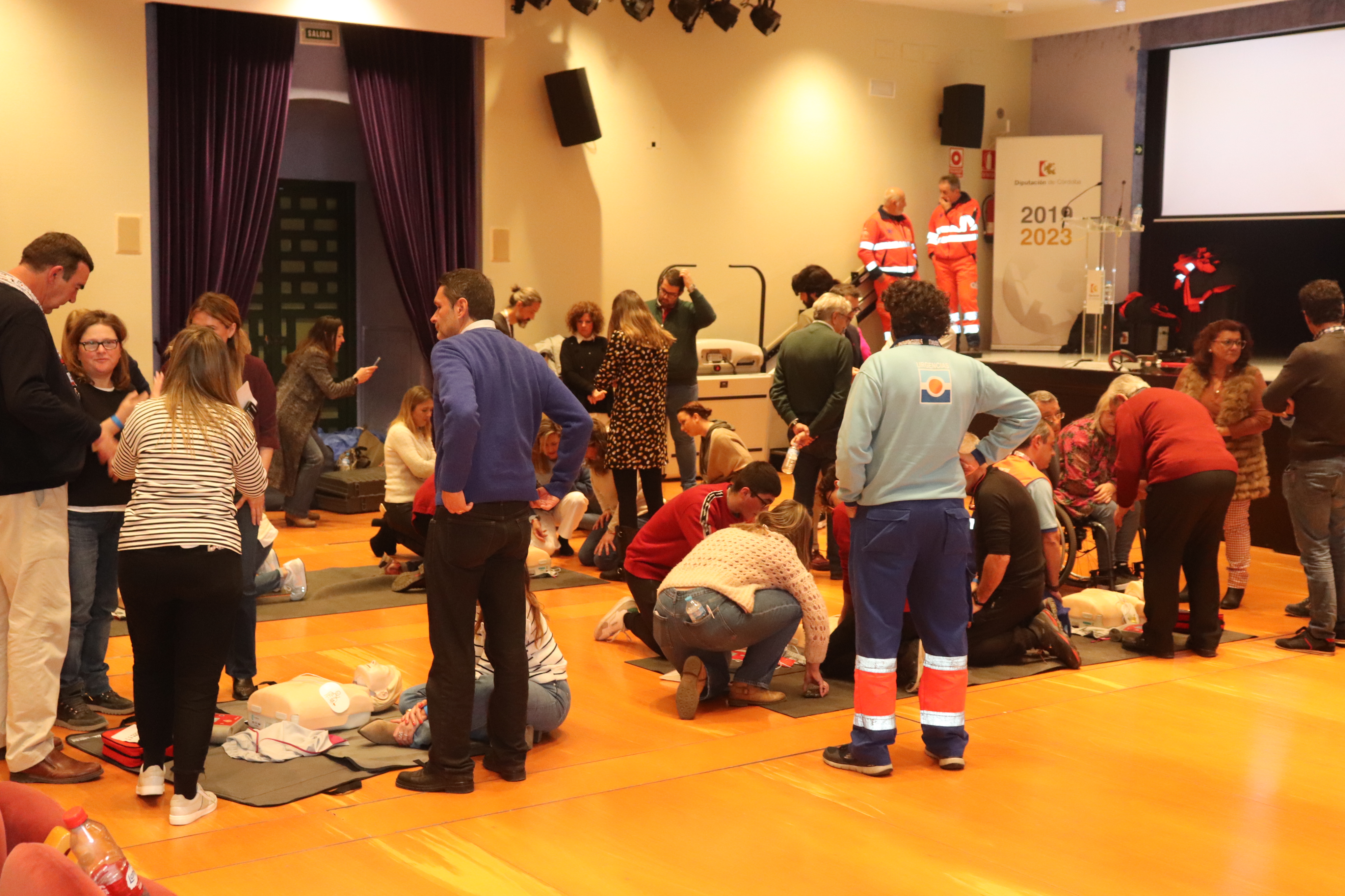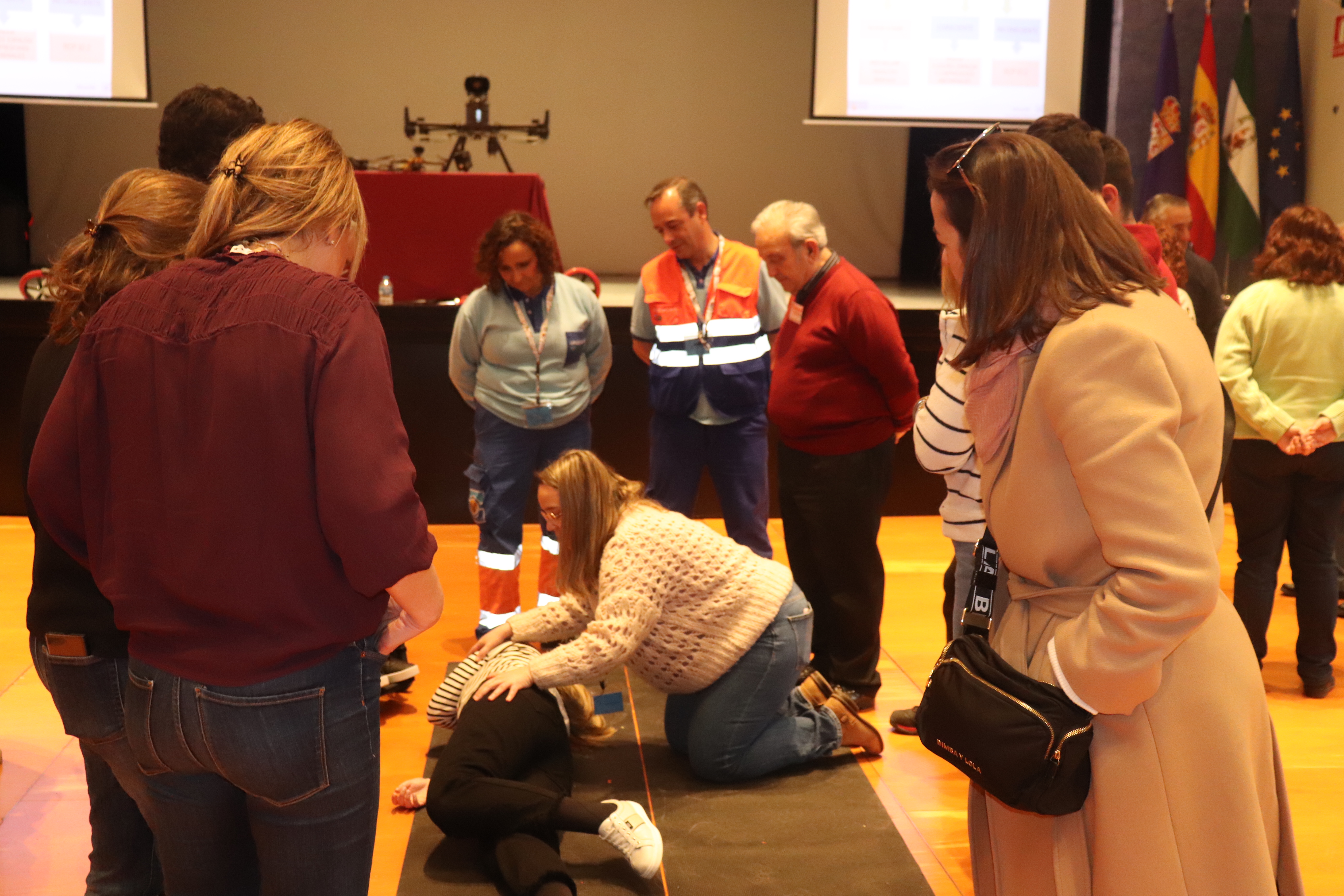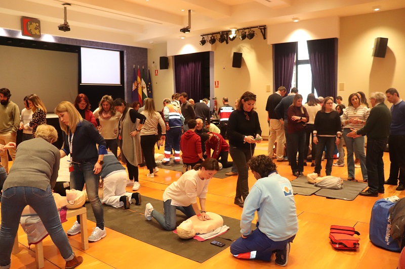 El taller, eminentemente práctico con el uso de maniquís Anne, ha tenido dos partes principales, en las que los participantes se distribuyeron en varios grupos. La primera parte contó con dos breves exposiciones teóricas a cargo de Coral Chacón, medico de Emergencias, que abordó las claves de una RCP de calidad; y de Carmen Lacalle, enfermera del Hospital de Alta Resolución Valle del Guadiato, que explicó cómo usar correctamente el desfibrilador externo automático. Ya en una segunda parte, y tras las palabras de la médico intensivista Rosa Pérez, se dieron nociones básicas sobre cómo detectar un ictus y cómo actuar ante signos de alarma, así como maniobras contra atragantamientos y otras emergencias.