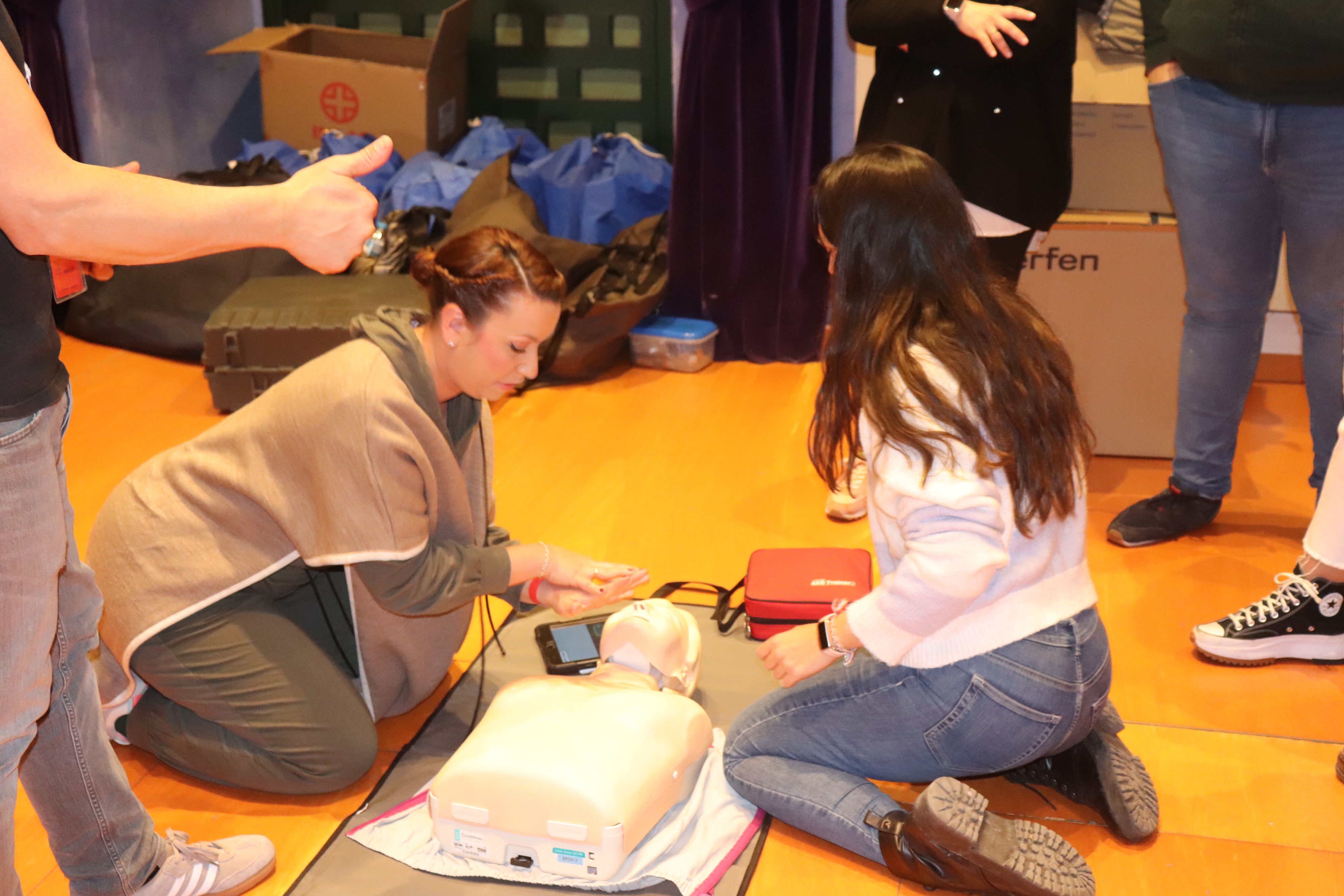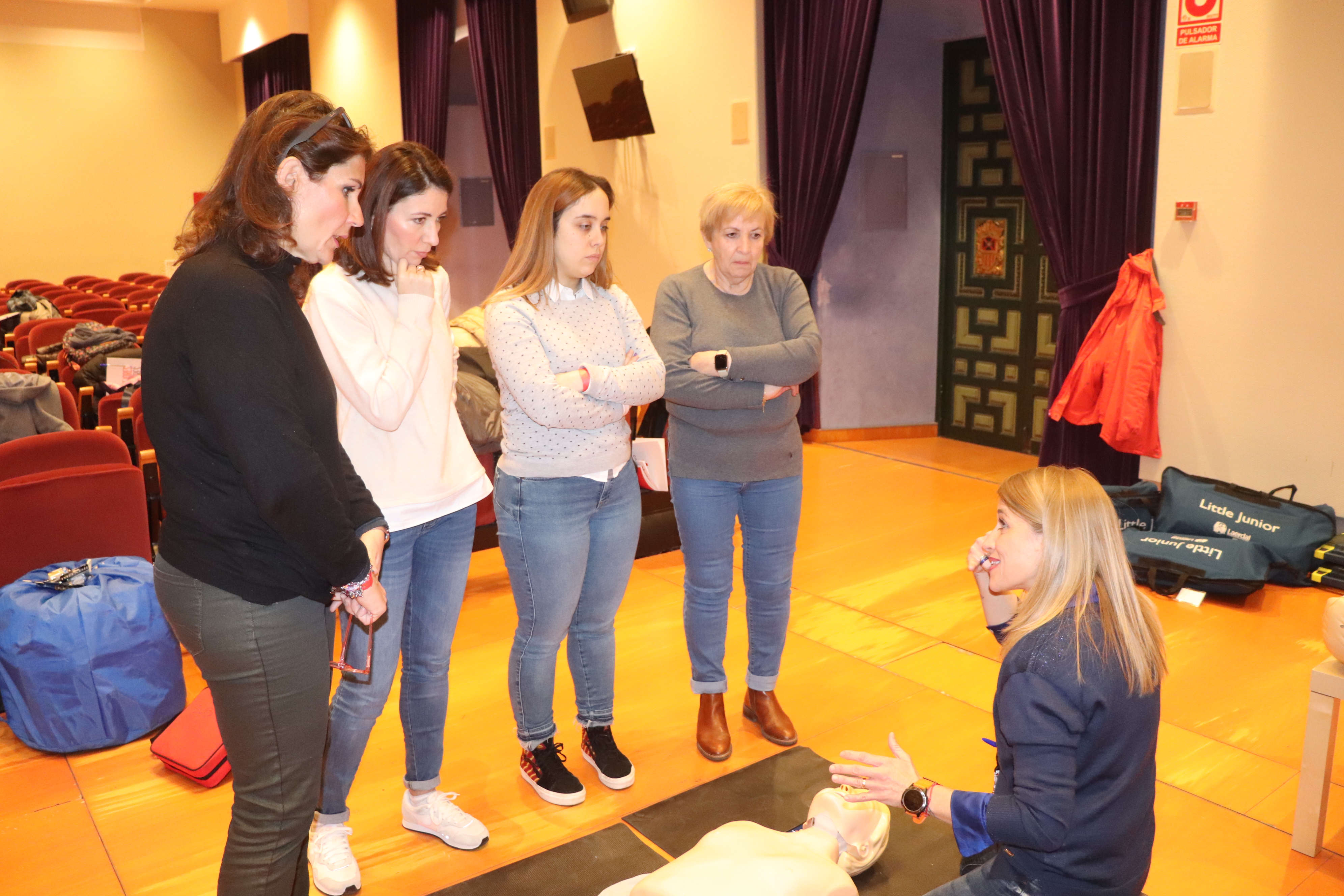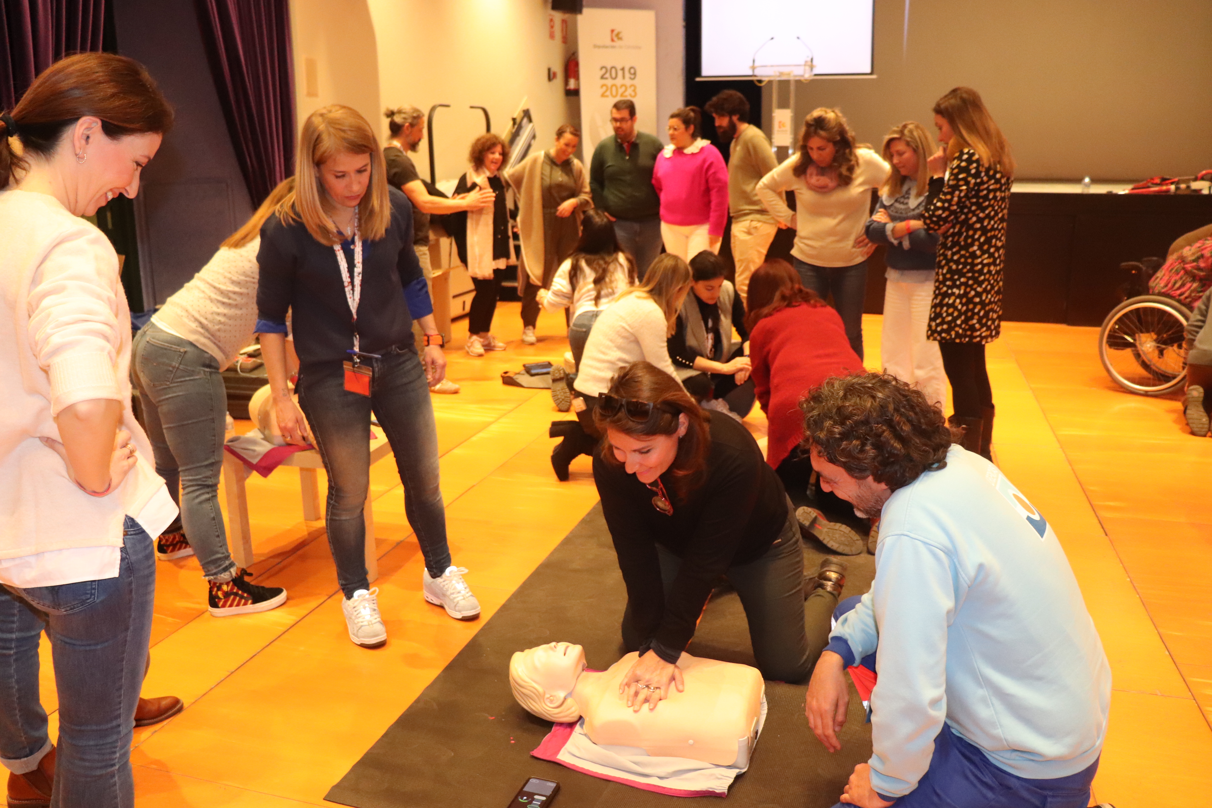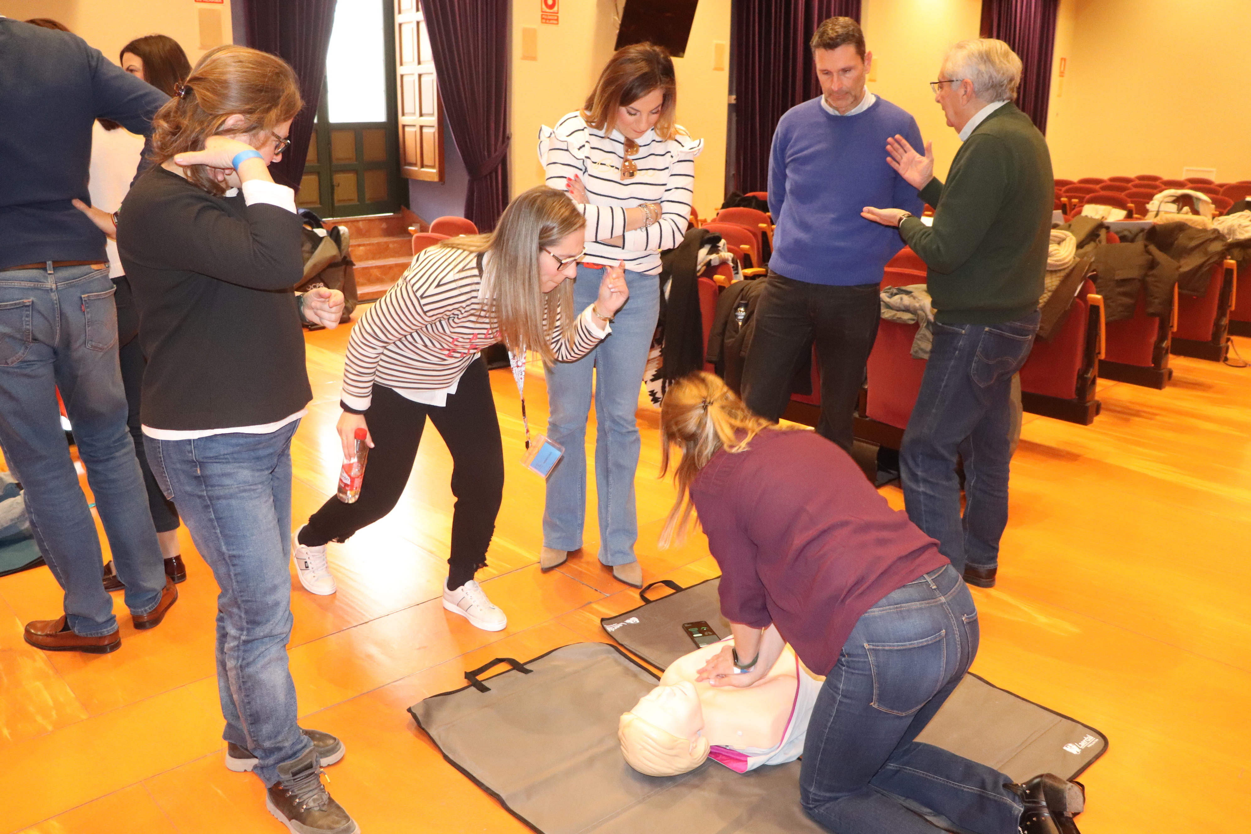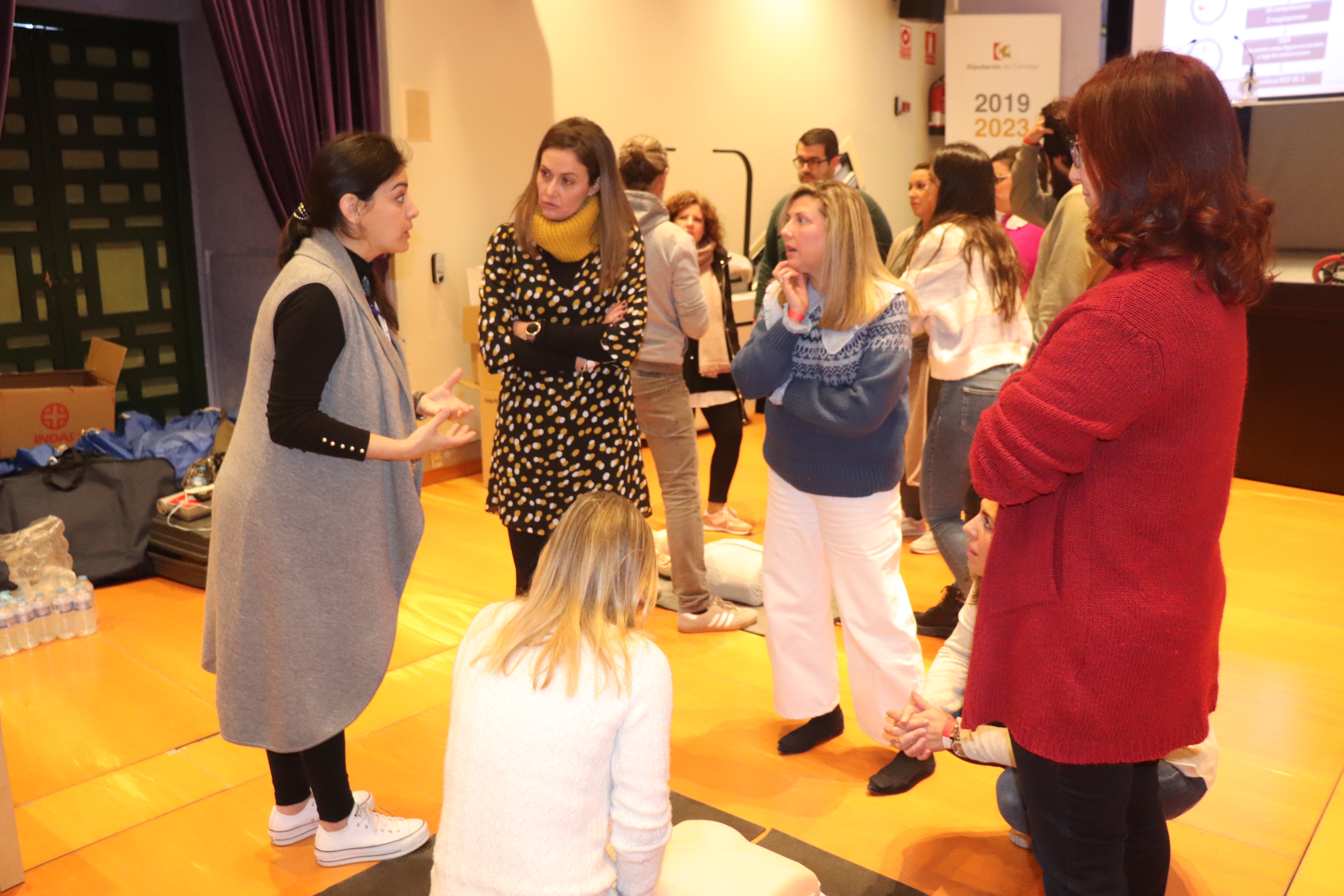 El taller, eminentemente práctico con el uso de maniquís Anne, ha tenido dos partes principales, en las que los participantes se distribuyeron en varios grupos. La primera parte contó con dos breves exposiciones teóricas a cargo de Coral Chacón, medico de Emergencias, que abordó las claves de una RCP de calidad; y de Carmen Lacalle, enfermera del Hospital de Alta Resolución Valle del Guadiato, que explicó cómo usar correctamente el desfibrilador externo automático. Ya en una segunda parte, y tras las palabras de la médico intensivista Rosa Pérez, se dieron nociones básicas sobre cómo detectar un ictus y cómo actuar ante signos de alarma, así como maniobras contra atragantamientos y otras emergencias.