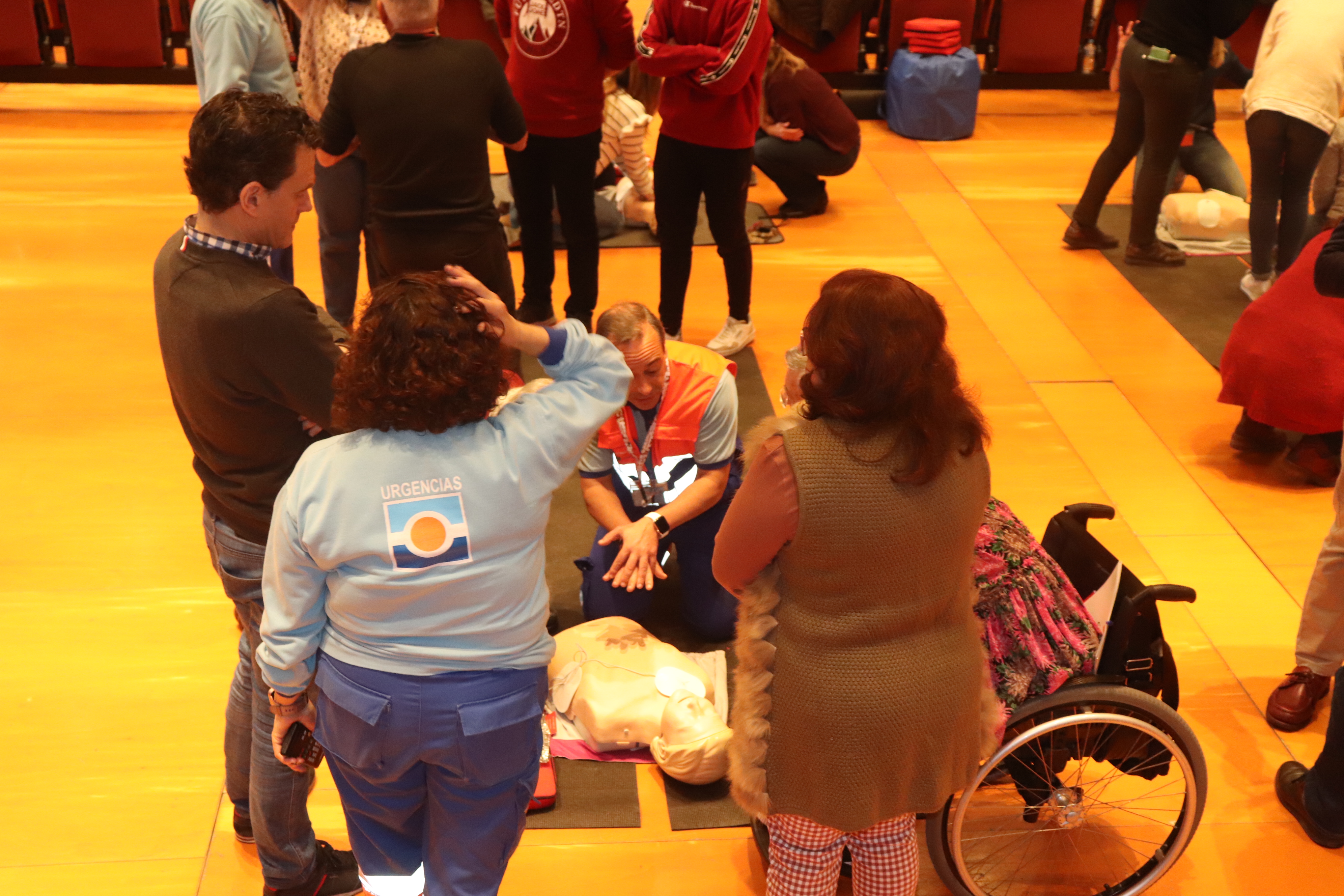Entre otras cuestiones, estos ciudadanos aprendieron que la ayuda que pueden prestar en los primeros instantes a personas que hayan sufrido una parada cardiopulmonar, mientras llegan los equipos de Emergencias sanitarias, es vital, porque en los 3 a 5 primeros minutos una adecuada atención básica aumenta porcentualmente los casos de supervivencia y minimiza las posibles secuelas negativas para la salud. Entre otros conceptos, se abordaron los cuatro pasos de la denominada cadena de supervivencia: la detección de que se está ante el caso de una persona en parada y el aviso al 112 o 061, las maniobras de comprensiones torácicas de calidad y ventilación, la llamada desfibrilación precoz (a través del DEA), y la llegada del equipo de emergencias.