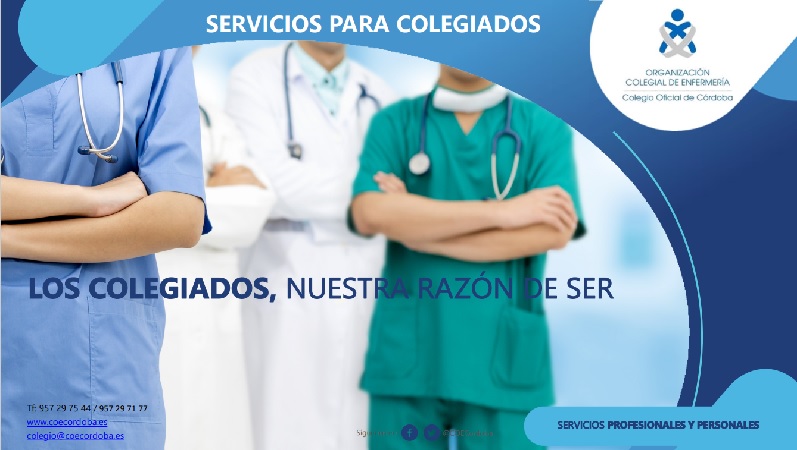 Los colegiados de la provincia de Córdoba tienen disponibles un amplio abanico de servicios profesionales y personales por pertenecer al Colegio Oficial de Enfermería de Córdoba.