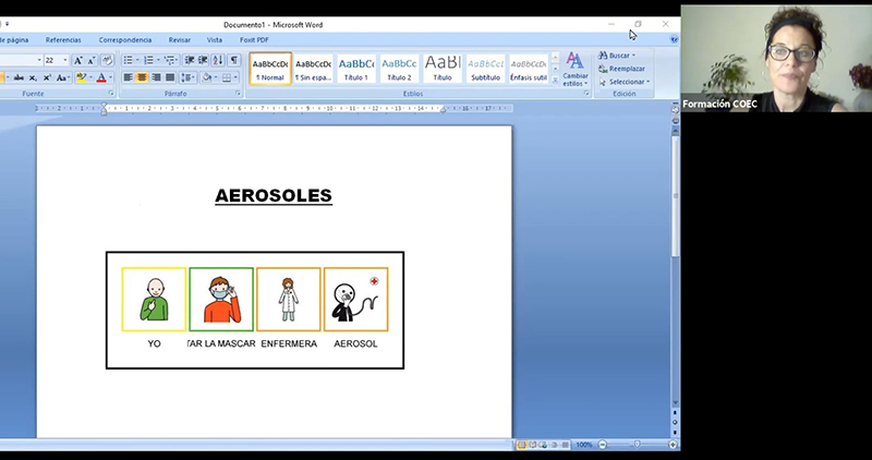 Esta especialista enseñó en el taller diversas técnicas y herramientas necesarias para abordar la visita de este tipo de personas a instalaciones sanitarias, y puso a disposición de los participantes una serie de pictogramas específicamente diseñados ante la necesidad de realizar una PCR a niños y jóvenes, que se pueden consultar en el siguiente enlace.