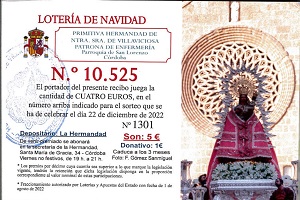 Este año el número es el 10.525, que puede ser adquirido en la sede del Colegio, en su horario de apertura habitual, en participaciones de 5 euros, 4 de ellos a jugar en el Sorteo y 1 euro de donativo a favor de la Hermandad de Nuestra Señora de Villaviciosa - Patrona de Enfermería, con sede en la Parroquia de San Lorenzo de Córdoba, que es la depositaria de estas participaciones.