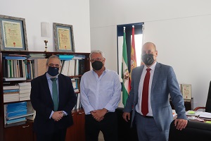 El director de Colectivos a nivel nacional de la compañía de seguros AMA, Miguel Ángel Vázquez, junto al delegado de la Oficina de AMA en Córdoba, Manuel Vázquez Limón, han visitado este miércoles las instalaciones del Colegio Oficial de Enfermería de Córdoba, donde han mantenido una reunión de trabajo con el presidente en funciones del Colegio cordobés, Enrique Castillo.