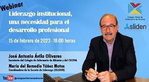 El Colegio de Enfermería de Alicante cuenta con una Escuela de Liderazgo (ESLIDEN), entre cuyos objetivos se encuentra el construir una base sólida de habilidades de liderazgo que pueda ayudar a las enfermeras y enfermeros a mejorar su confianza y competencias que les sirvan para enfrentarse a los retos diarios de su trabajo y les hagan capaces de liderar y asumir desafíos de liderazgo en el terreno profesional y también en el ámbito personal. En este sentido, el próximo 15 de febrero de 2023, a las 18.00 horas, va a celebrar un webinar titulado Liderazgo institucional, una necesidad para el desarrollo profesional. La actividad contará como ponente con José Antonio Ávila Olivares, secretario del Colegio de Enfermería de Alicante y del Consejo de Enfermería de la Comunidad Valenciana (CECOVA).